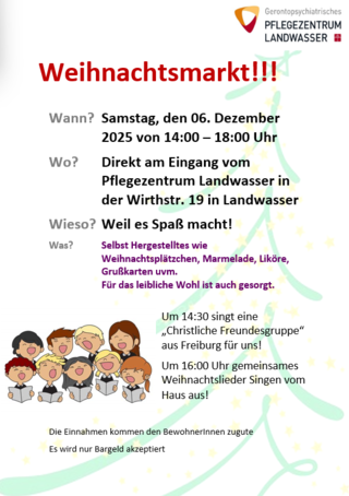 Am 06. Dezember findet von 14:00-18:00 der diesjährige Weihnachtsmarkt vor dem Pflegezentrum statt.